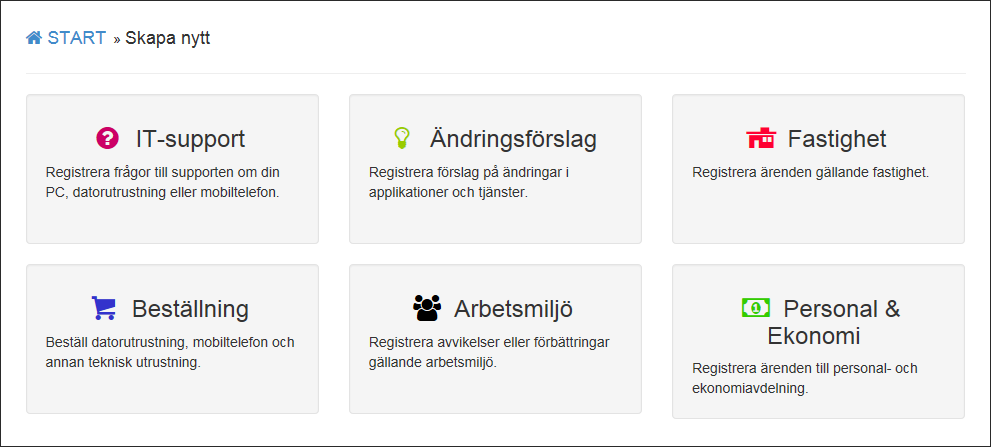 Exempel på knappar för att öppna formulärmallar i självservice.