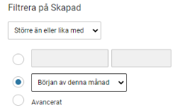 Filter: "Skapatdatum är senare eller samma som början av denna månad"