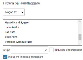 Vill du filtrera på den inloggade användaren markeras checkboxen Inkludera inloggad användare i filtreringen.