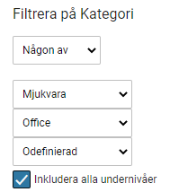 Det går också att filtrera på en nivå med alla underliggande nivåer. I filtreringen väljer du då att markera checkboxen Inkludera alla undernivåer.